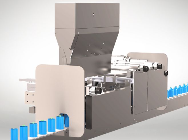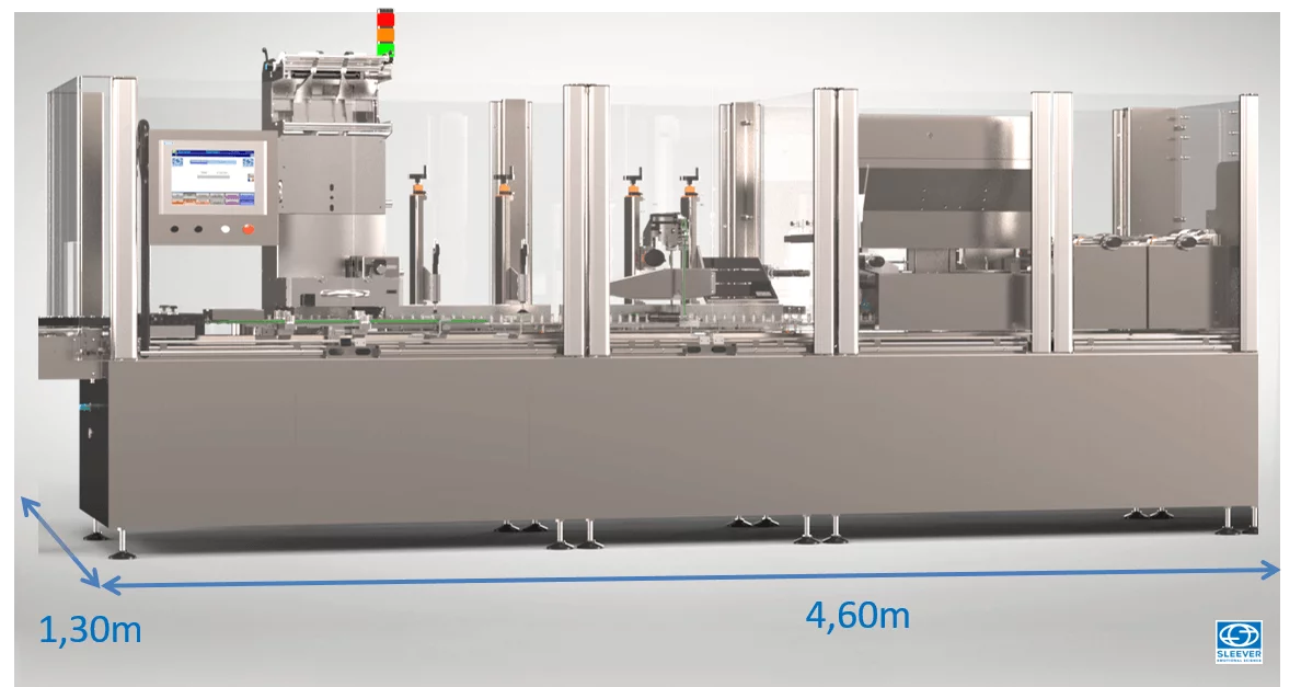 Pour travailler à haute cadence en conditions humides, cette machine est équipée de modules pour garantir la performance et la qualité des produits: module de séchage en entrée pour faciliter la dépose du sleeve, dispositif d’orientation pour les formes complexes, et système de contrôle et d’éjection.