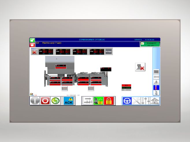 Différentes sondes de température sont installées dans le tunnel de rétreint. Les premières servent à assurer la bonne température de rétraction du sleeve et les secondes servent à mesurer la déviation de la température pour la sécurité du produit .Si la température augmente, l’information est transmise à l’opérateur pour action corrective puis enregistrée pour la traçabilité du produit. Elle est ensuite communiquée vers un serveur externe.