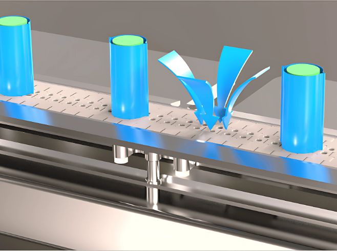 Un système d’éjection des produits à haute cadence, sans altérationLe module d’éjection a été spécialement conçu pour écarter des flacons légers et instables défilant à haute vitesse, en les conservant en position verticale, pour qu’ils ne soient pas altérés lors de l’opération.