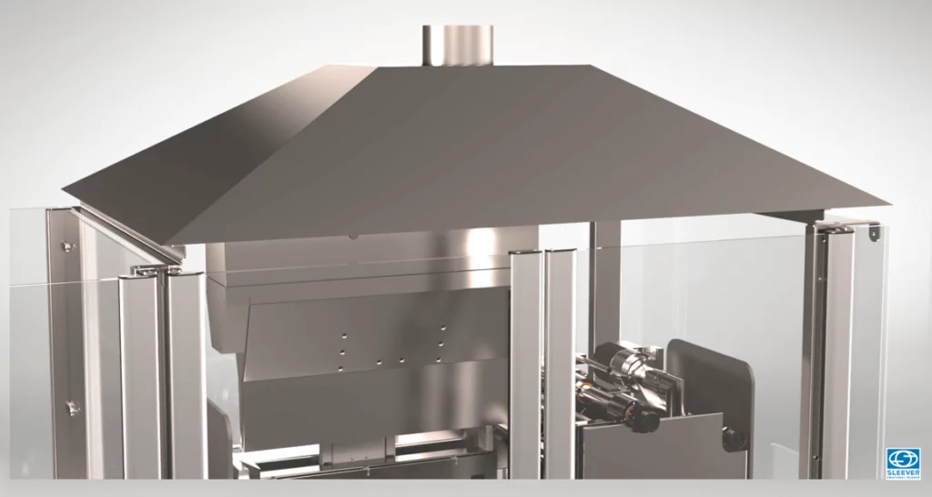 Température maitrisée pour travailler en atmosphère contrôléeLa hotte d’aspiration permet d’éviter la diffusion de chaleur liée à l’opération de rétraction, et de modifier la température de la zone de conditionnement. Les contraintes de travail en atmosphère contrôlée sont ainsi respectées.