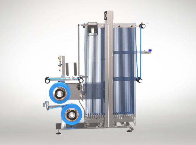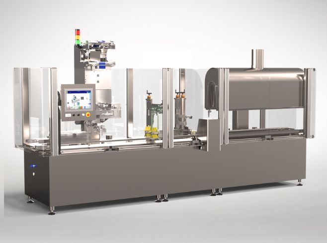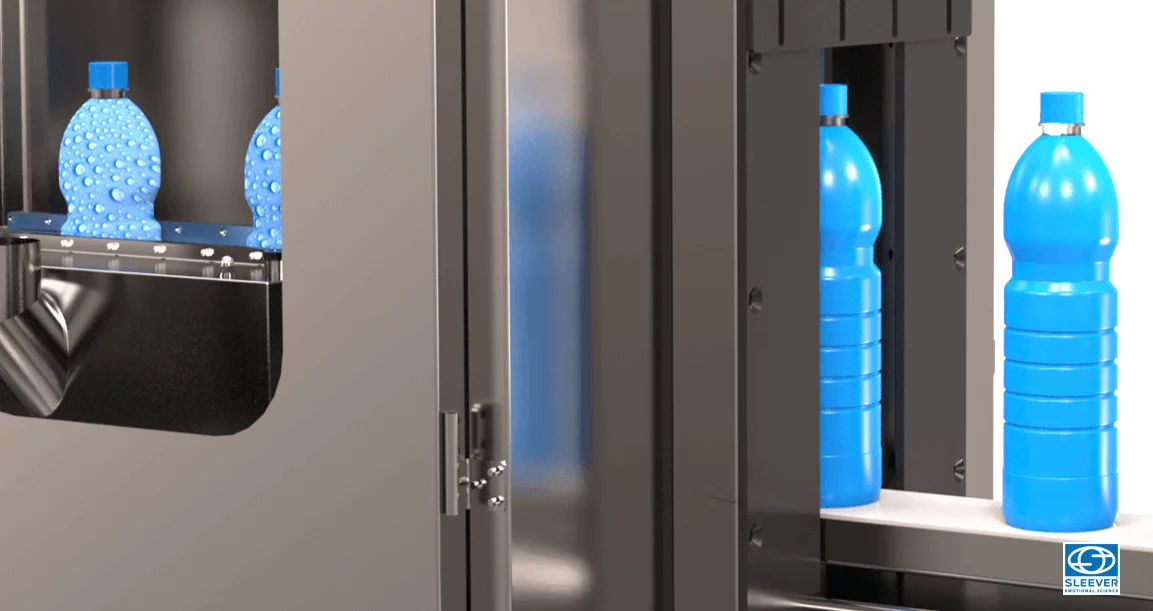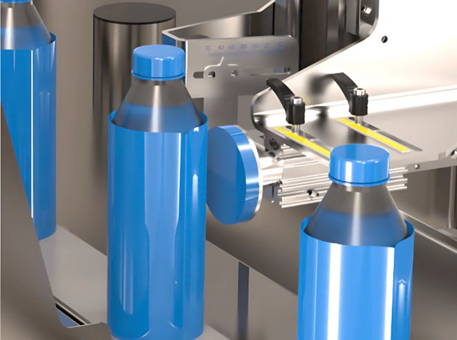 Pour travailler à haute cadence en conditions humides, cette machine est équipée de modules pour garantir la performance et la qualité des produits: module de séchage en entrée pour faciliter la dépose du sleeve, dispositif d’orientation pour les formes complexes, et système de contrôle et d’éjection.