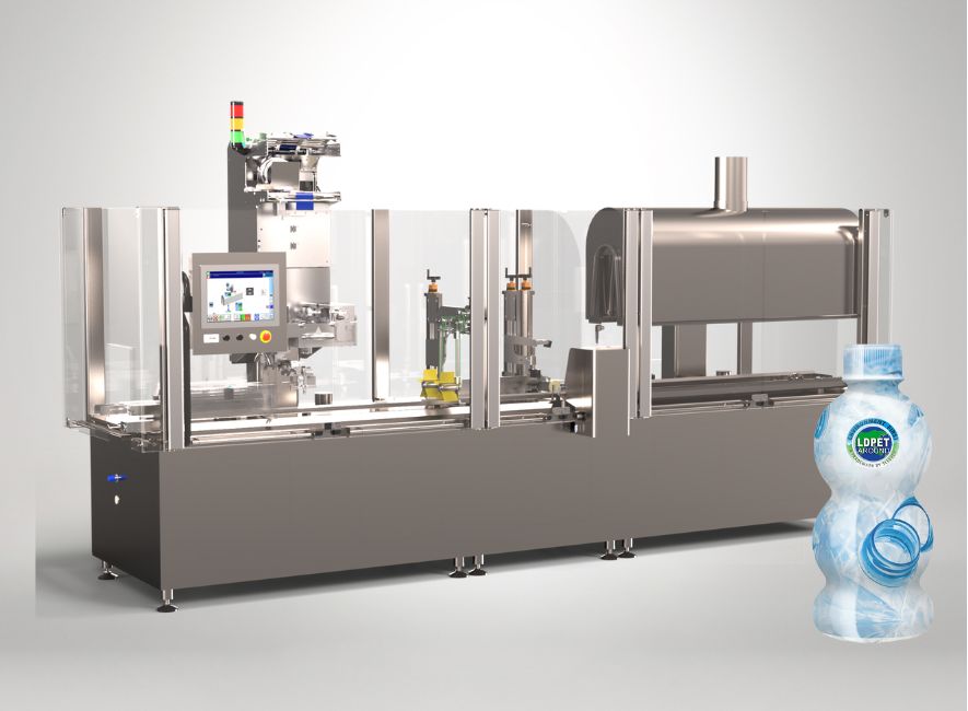 Une machine conçue pour décorer les bouteilles PET des boissons sans alcool et de l’alimentaire liquide, de 100ml à 2L, de toutes les formes, jusqu’aux plus sophistiquées. Cet équipement permet la mise en oeuvre du produit LDPET®, sleeve compatible avec les étapes du recyclage du PET en boucle fermée (bouteille à bouteille).