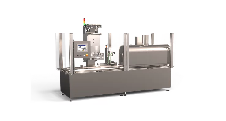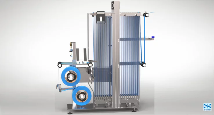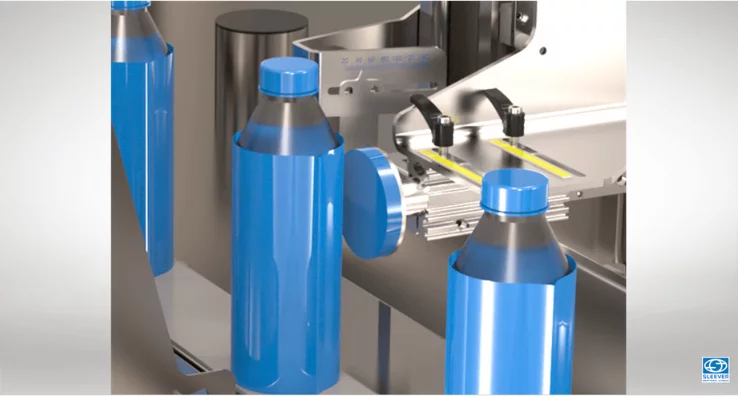 Pour travailler à haute cadence en conditions humides, cette machine est équipée de modules pour garantir la performance et la qualité des produits: module de séchage en entrée pour faciliter la dépose du sleeve, dispositif d’orientation pour les formes complexes, et système de contrôle et d’éjection.