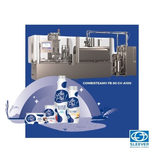 Sleever® présente une solution « tout-en-un » avec sa micro-ligne, la COMBISTEAM GV FB80-A100 offrant une gestion efficace de divers matériaux tels que le PET et le PEHD, avec des contenances de 80 g à 750 ml.